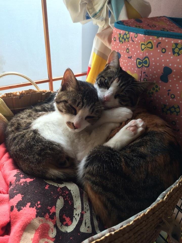 最近は少し暖かくなってきたから、くっついて寝る事も減ってきたけど、追いかけっこや毛繕い、時にはプロレスをしながら楽しく過ごしてます。