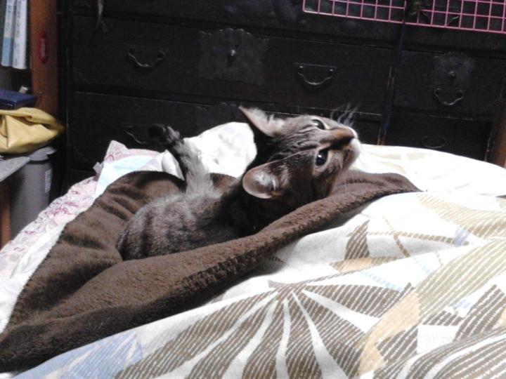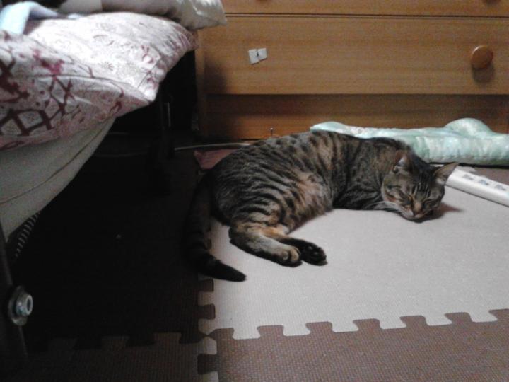 キリのいいところで自室に入ると、ベーさん勢い余ってキャットウォークで足を踏み外す。
