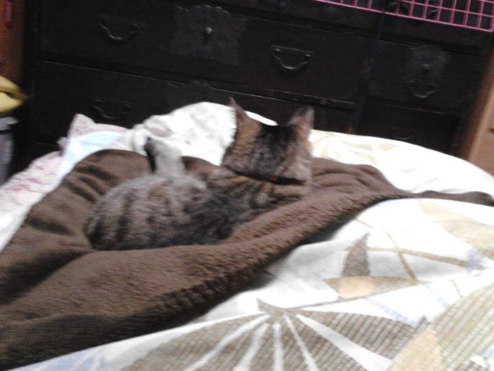 ゴロゴロ言い出して尾もそのままだったので放すと、そのまま手を毛繕い。
