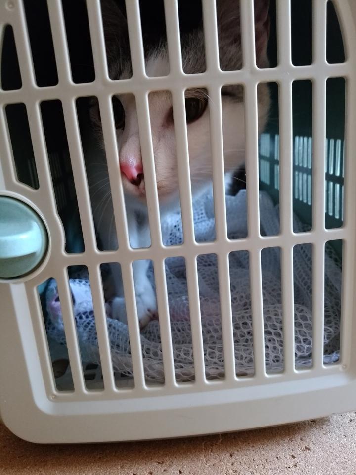 迎えに行くとなかなか出てこない😅ゲージからキャリーバッグにはいりたがらなかったようです。