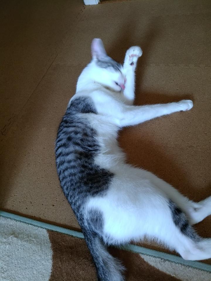やっと落ち着いて毛づくろい始めました。