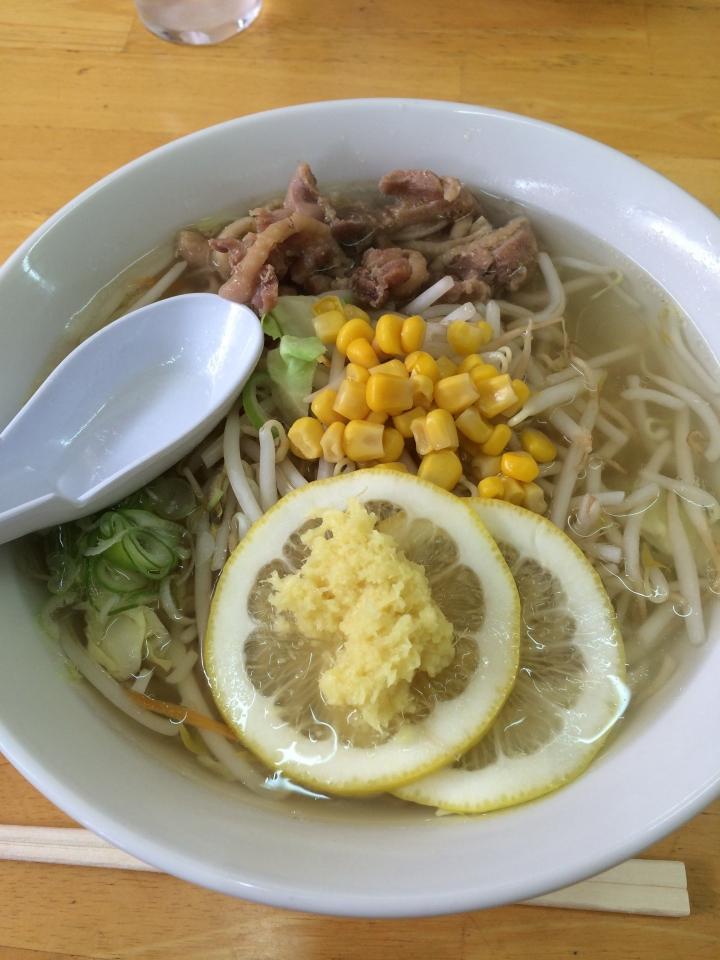 しょうがたっぷりで、レモンの酸味が効いてる、さっぱり味のラーメンです。