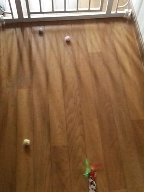 キラキラボールを何個も持ち出しては、追いかけて遊んでいます