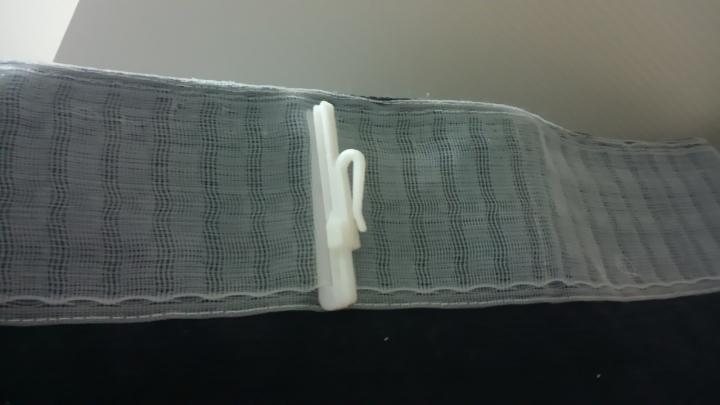 ②裏側 カーテンの金具を引っ掛ける為のパーツ(白の生地部分)が売ってる