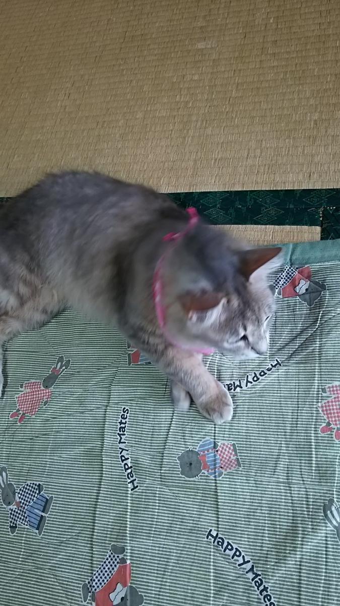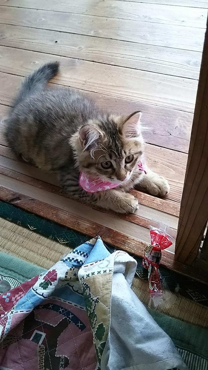 いたずらっ子ふわりに手を焼く人間に代わって、寝転んでた母猫・きらりが教育的指導に向かう瞬間です。