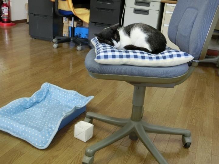 あとA4用紙の入っていた箱のフタにクールマット乗せただけの簡易ベッド。