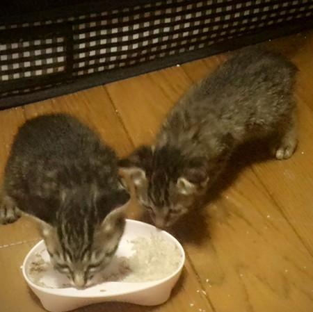 残りを子猫が食べました!
