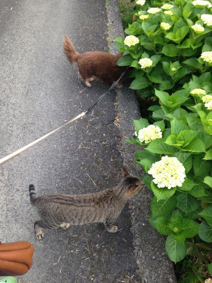 猫ちゃんはお利口にお散歩について来てくれて、犬とも仲良くしてくれる良い子なのです(=^x^=)