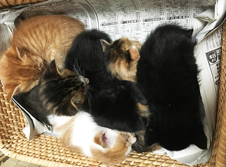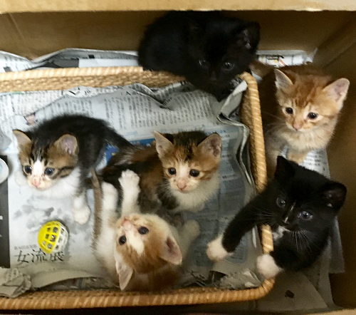 生後3週間?そこらと思われる赤ちゃんネコ6匹。