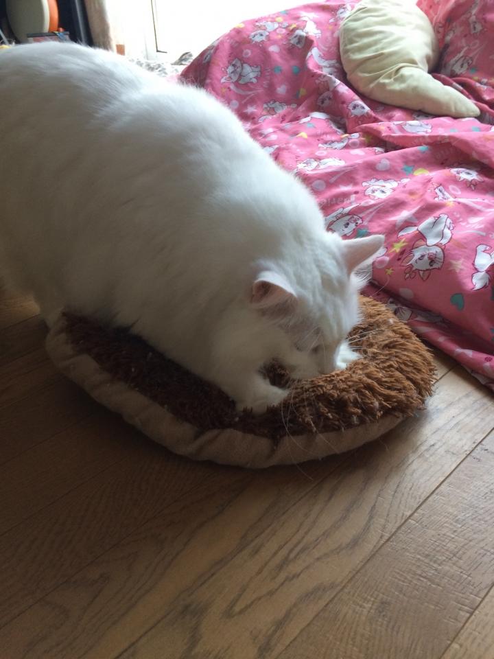 今は、替わりに、クッションをふみふみして、ごろごろ言ってます。