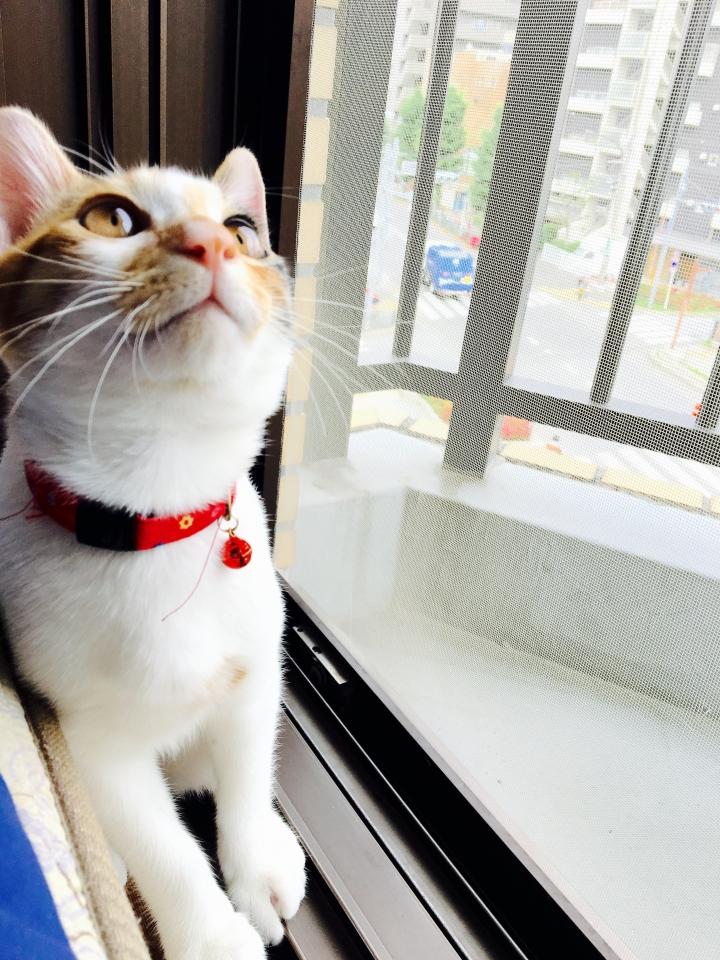 あたちビビりだから網戸越しにしか近づけない