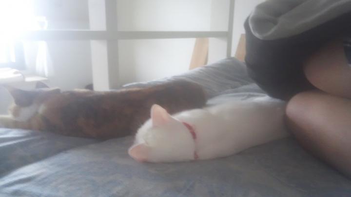 ここたそが、気持ちよさげに寝てる~ みきたそは、洗面所のマットでゆっくり