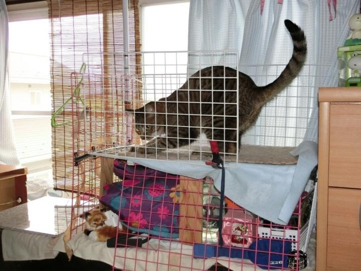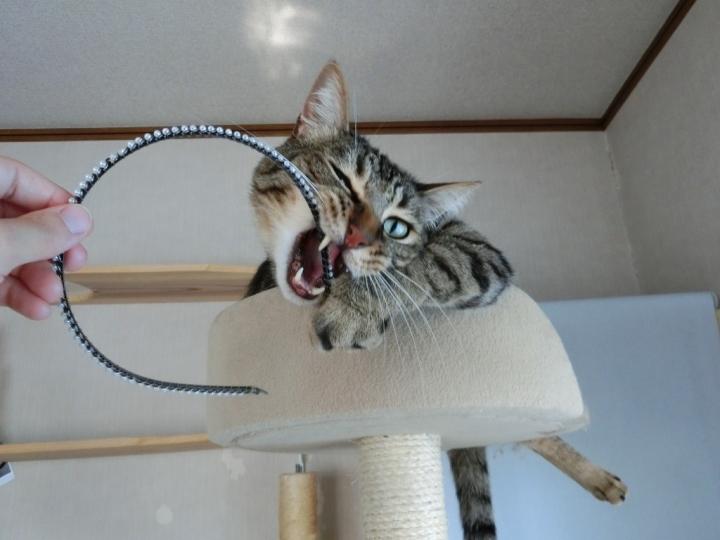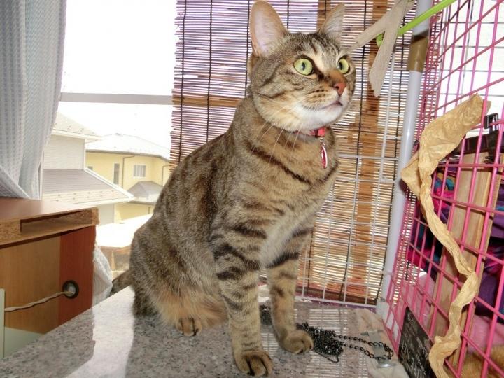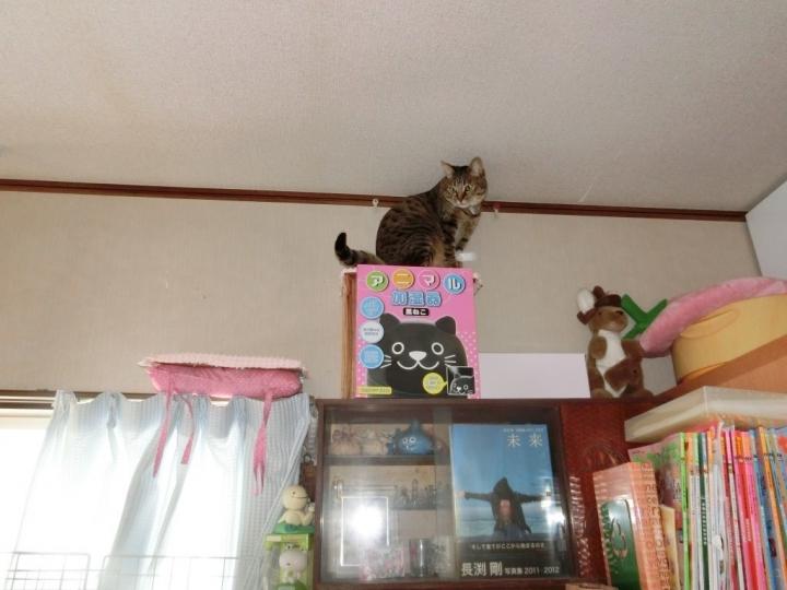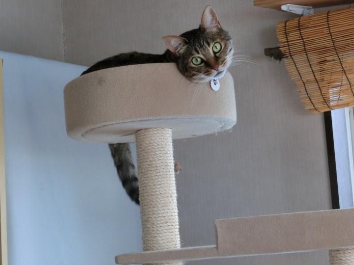 毛を取られたあとは、お気に入りタワーでゆったり。