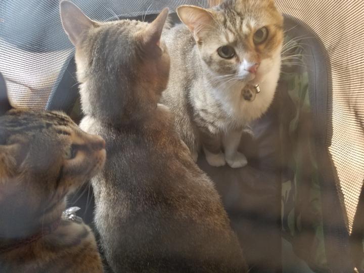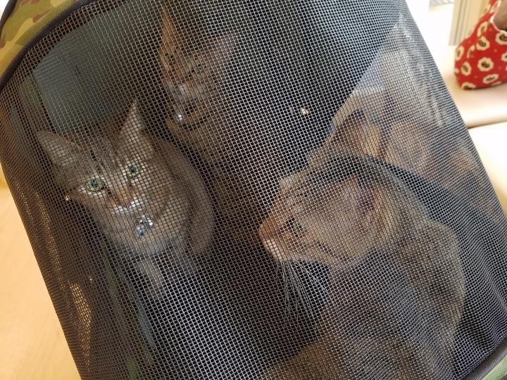 こんな感じで、3匹乗ってもわりと余裕があるバギー。