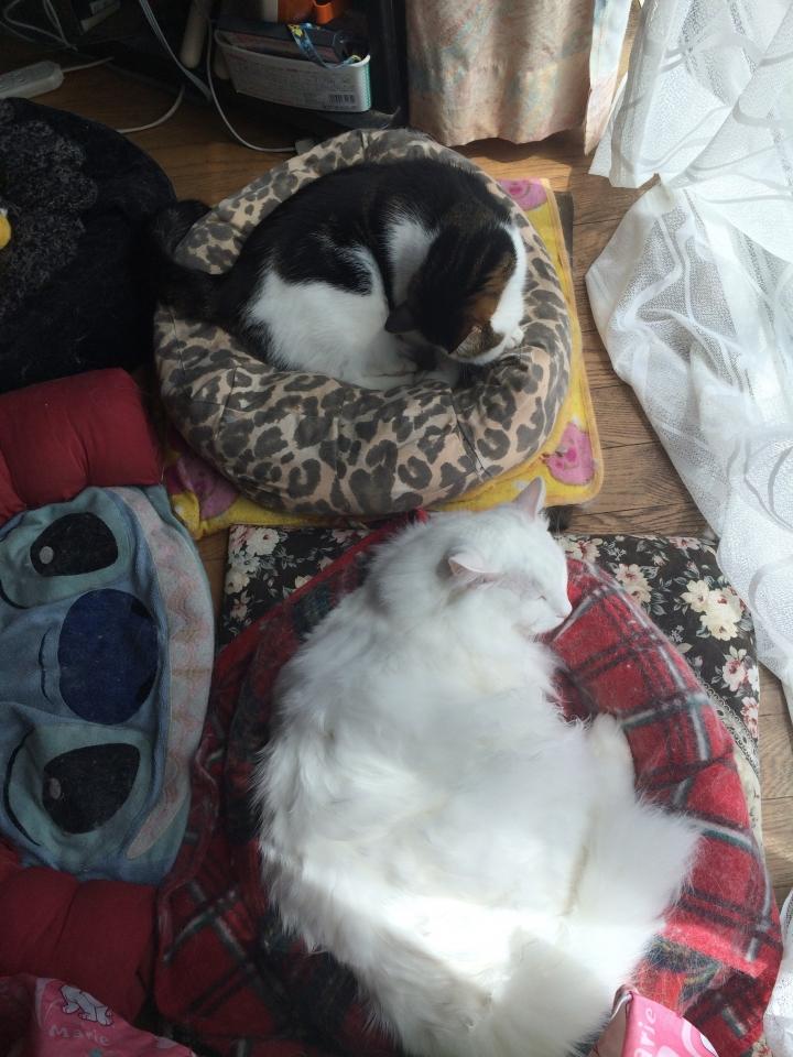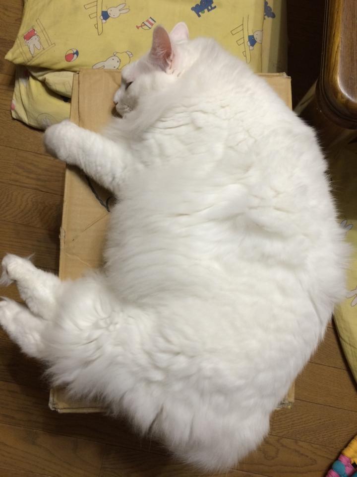 そして、昨日の夜、ダンボール箱の上でくつろぐ、マリーちゃん。