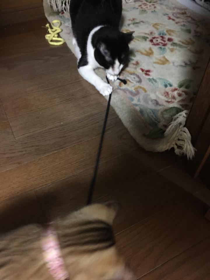 紐に反応するあんちゃん。大きいから忘れちゃうけど、まだ子猫なんだよね(^_^)