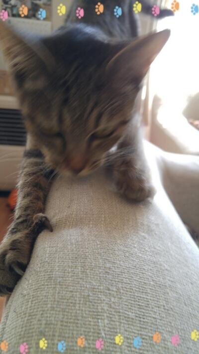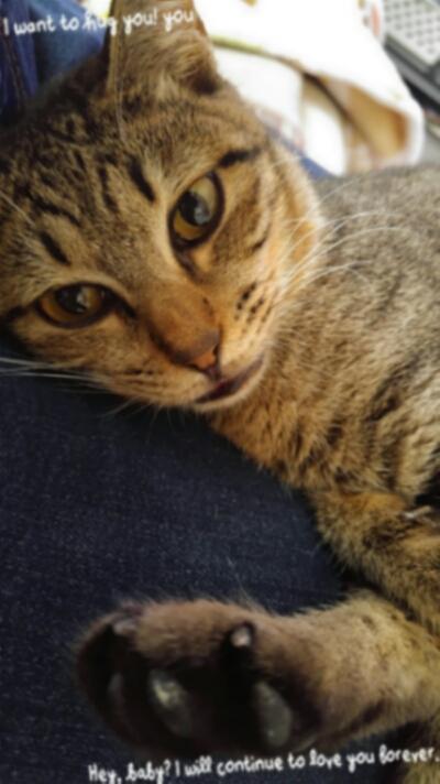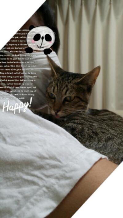 お父さんに抱かれて、魂が抜けてる、猫、1匹。