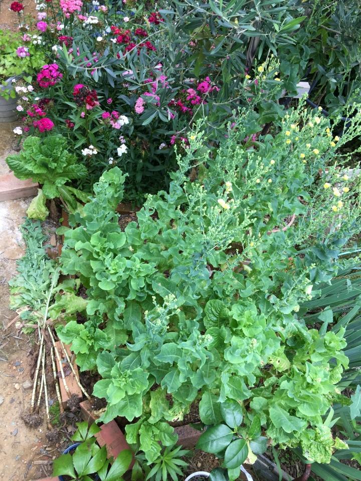 葉をかき取って収穫するので、たくさんの株を密植し植えておけば長期間に渡って収穫し続けることができる優秀な野菜。驚くのは害虫がつかないこと。我が家は無農薬栽培なのでありがたい。