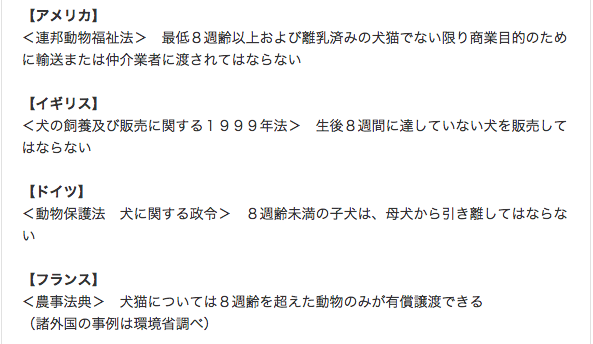 日本も、子犬や子猫の健全な成長を守る法律の制定が、望まれます。