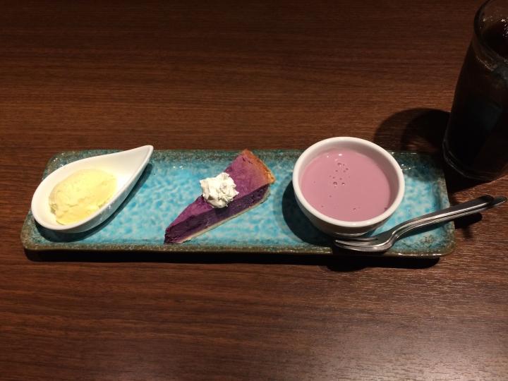 アイス、紫芋チーズケーキ、カシスババロアでした。