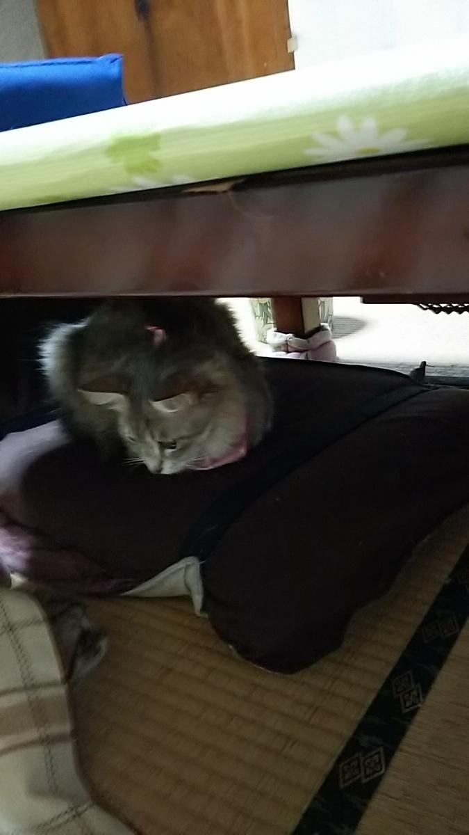 ほら、きらり!ふわりが顔だけずにょにょんと出して、お母さんのこと狙ってるヨ。