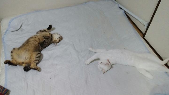 暑いせいか寝相も悪い…。