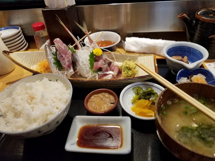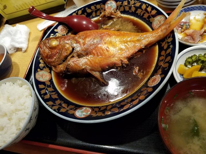 ワタシはアジ刺を、ダンナさんは金目の煮付けを食べました。