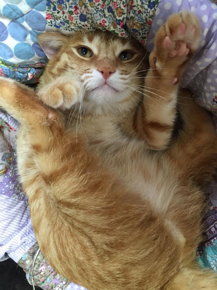 先住猫のもちゃさんは優しい性格なので、傷痕を舐めようとするので、必死で阻止してます。