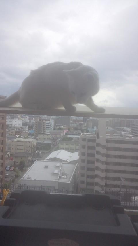 ベランダから直接外を見るのは怖いみたいなのと、揺れるので、怖がってすぐ降りちゃいました。