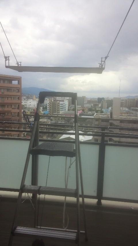 ベランダのフックに板をかけて、お外を見るのが好きな猫用に高見台を作成!