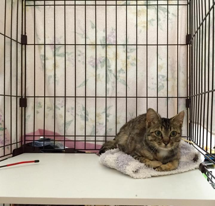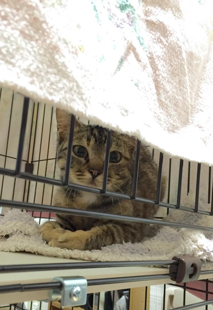 最初は、フーッシャーッ💢と噛みついてきましたが、喉をクリクリしたら「…なっ⁉︎なんにゃの⁉︎この感覚は⁉︎」って表情で、唸るのをやめて固まってました。