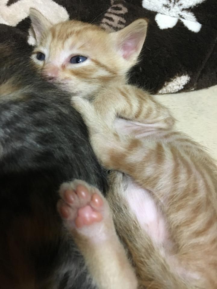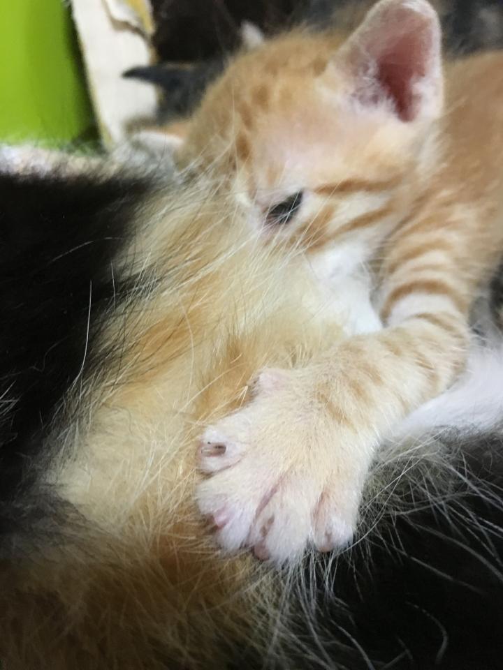 母乳をぐびぐび飲んだ後、うっとりしている茶トラ1号です。