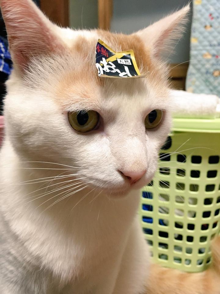 親父にでこにお弁当に貼ってあった「天然(マグロ切り身)落とし」のシールを貼られる(なおマグロは貰えないのでご立腹)