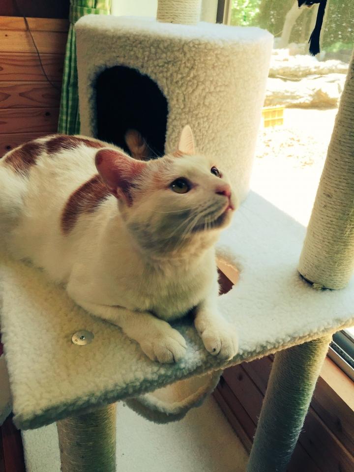 念願のキャットタワーを買いました!買っても遊ばなかったらどうしょ〜〜っと思っていましたが、ゆーさんがよくおねんねしてます。オモチャねずみともわちゃわちゃしてます。気に入ってくれたみたいです。ヨカッタ。