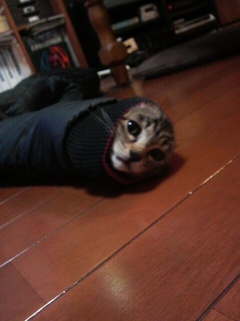 小さい姉ちゃん(当時小学4年生)のジャンパーの袖に詰まって恵方巻状態(笑)