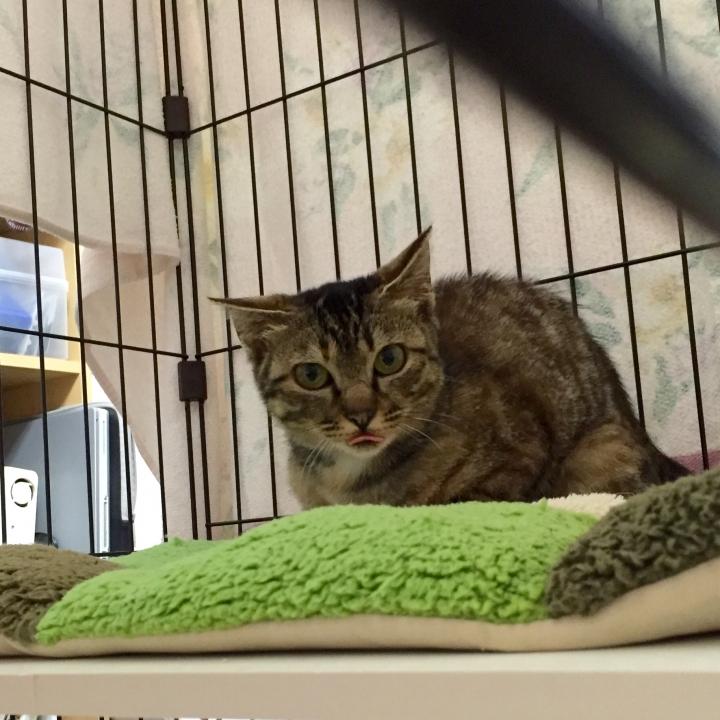 それまで、生ゴミの日にゴミ置場に現れては、ビニール袋を食いちぎり、袋の中から食べられそうなものを食べて、人が近づくと一目散に逃げていたキジトラさん。