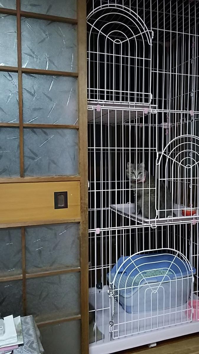 ガラス戸を無理矢理に猫ドアにしたら、絶対ケガしちゃうよな~。いいな~猫ドア。