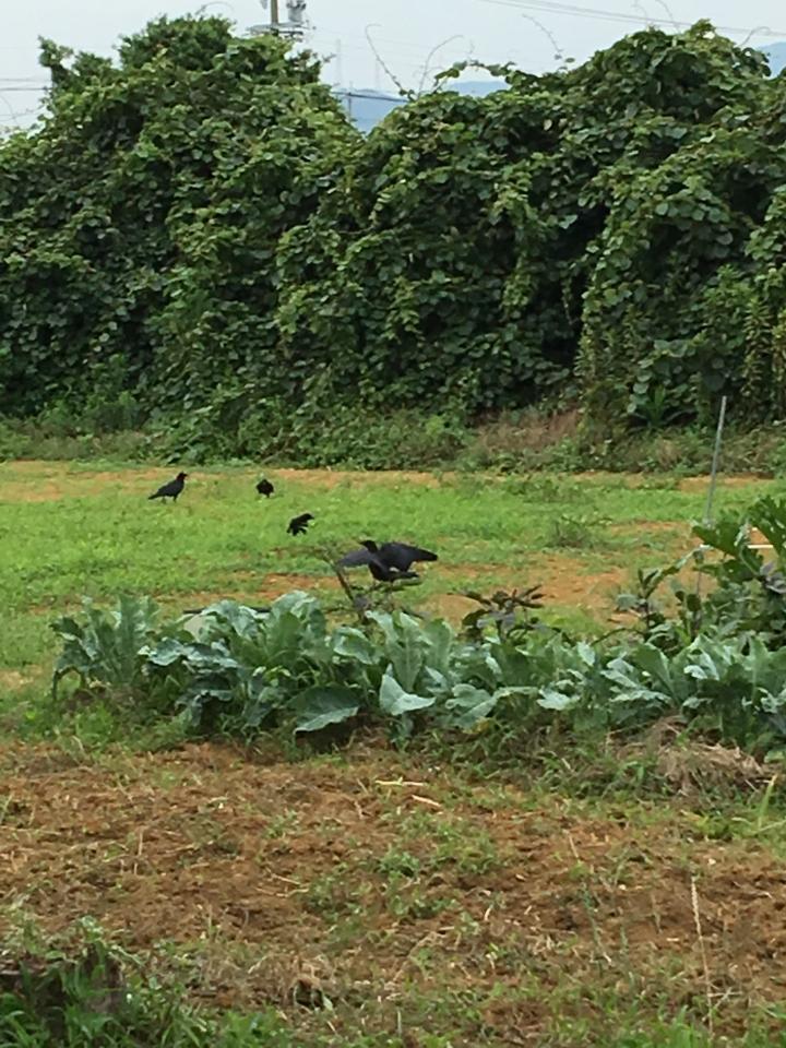 なんだか裏の畑が気になる。窓から畑を見ると10羽ほどが遊んでいる!!!