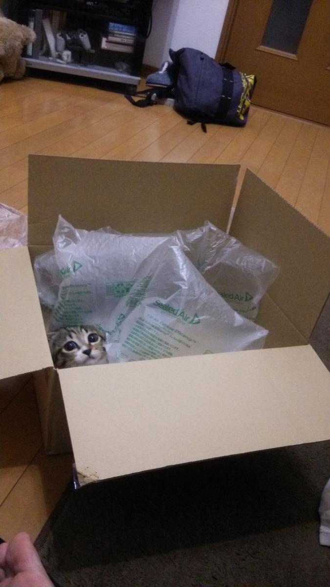 そのあとで居間にあった箱に入って遊んでました( *´艸`)