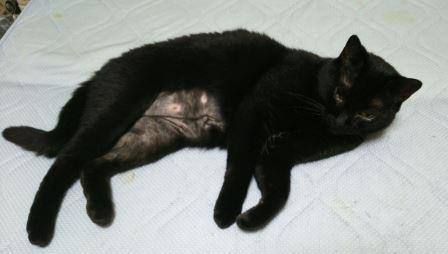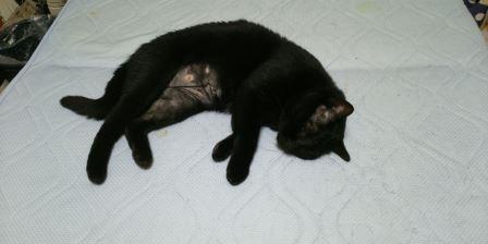 はーろの下腹部。1年前はストレスでグルーミングしすぎたせいで、1本の産毛もないツルツルだったのですが、最近、全面に毛が生えてきてます。早くお腹もふさふさになるといいな。