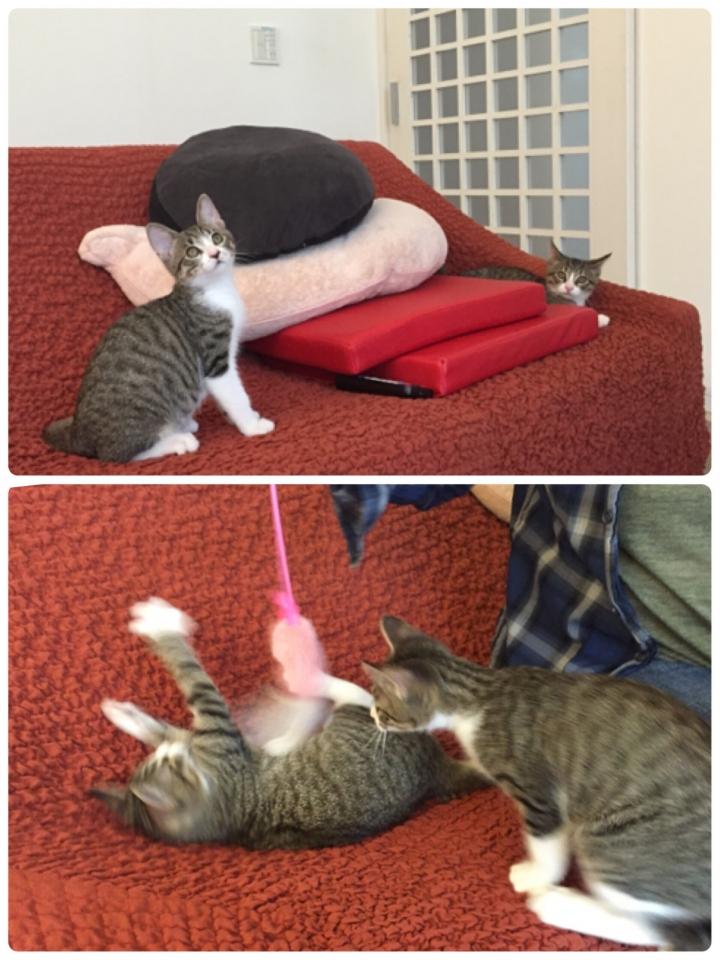 奥さんが猫じゃらしで遊んであげて、ふたりとも家中を走りまわり幸せそう〜❤️