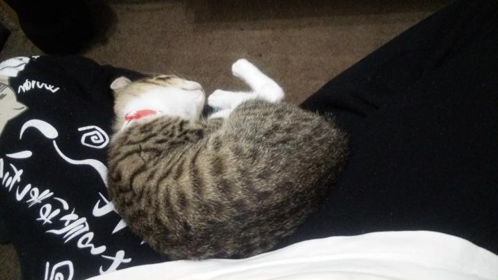 ヒザの上で寝られると可愛くて起こせない( *´艸`)