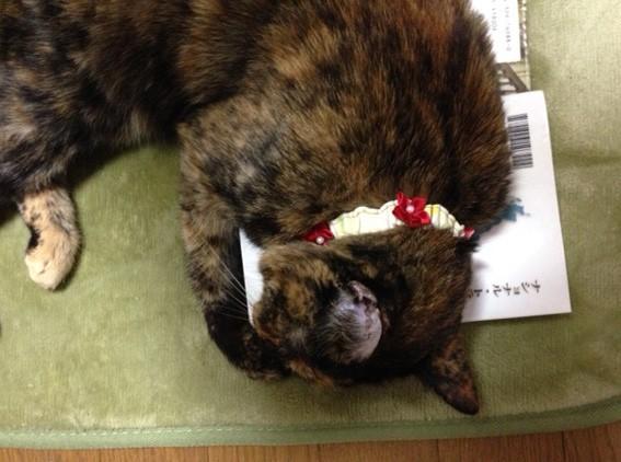 本を枕にお昼寝中。