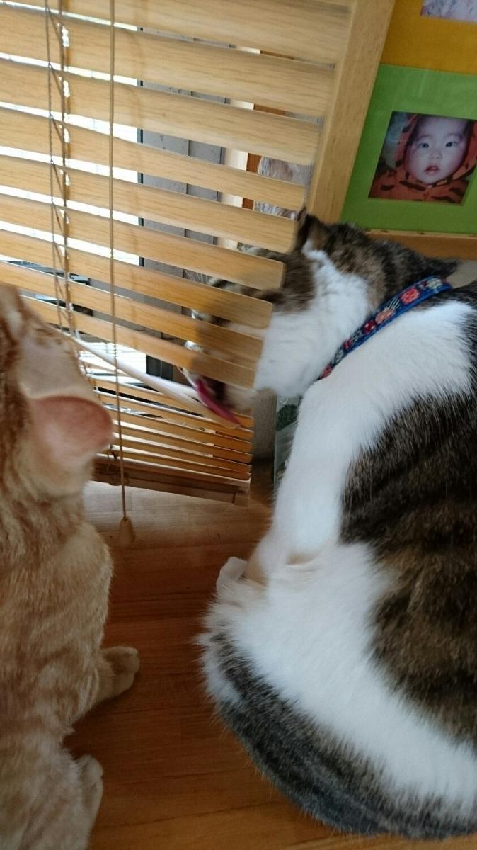しかし、ちょびのこの行動はブラインドをキレイにしてるのか、自分のベロをキレイにしているのか…( ̄▽ ̄;)