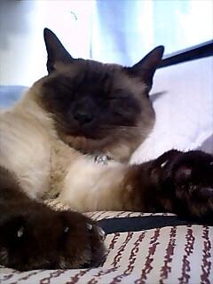 頭領の枕に頭を乗っけて、気持ち良さそうに昼寝の図。