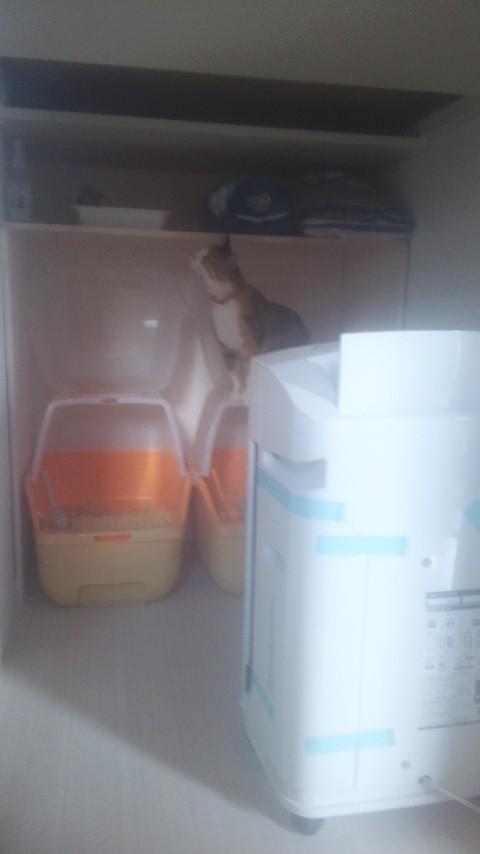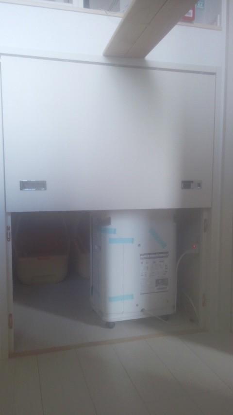 ↓スペースができたので、空気清浄機を中に入れて、上の扉を閉めても、トイレには問題ないようです。