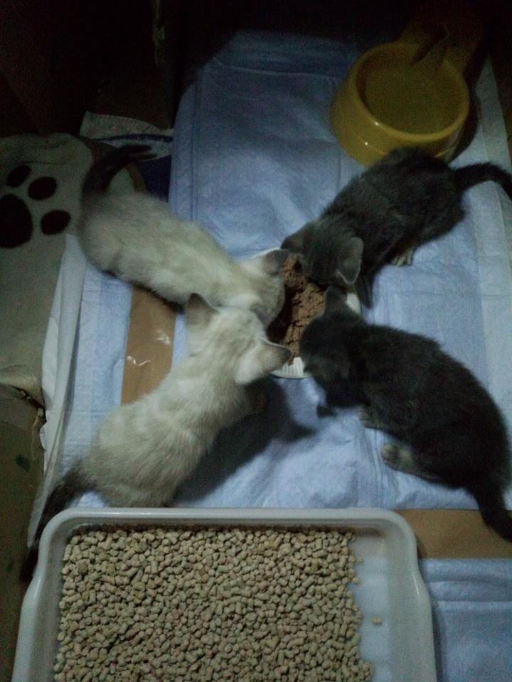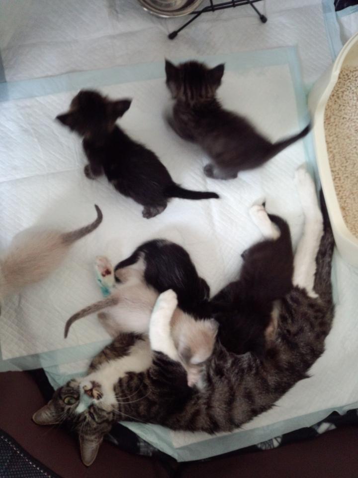 生後14~15日のちびちゃん達とママ猫をお世話してました。