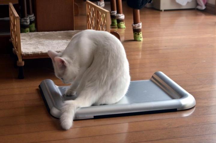 食べ終わると、この間かったアルミの冷たい台に乗ってご満悦です。