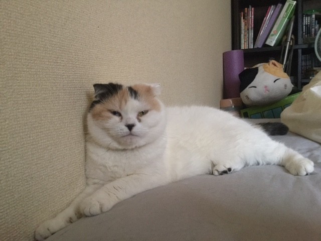 扇風機で部屋の空気をまわしていますが、ちょうど風が当たるところでだらけています^^