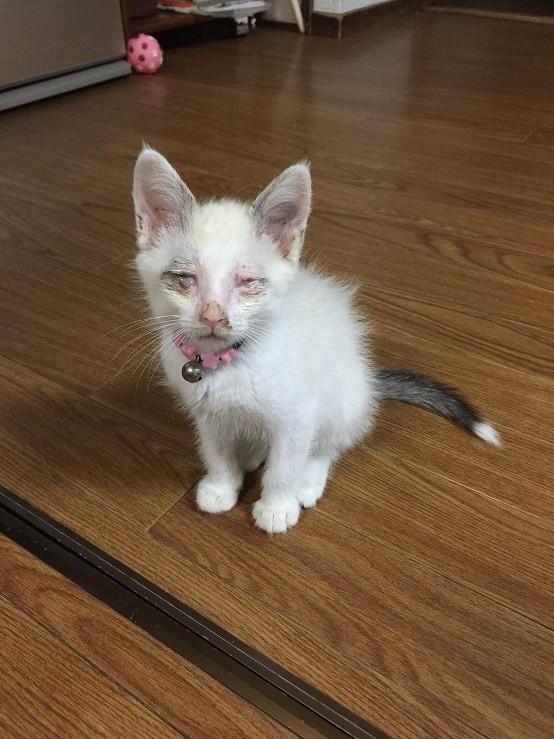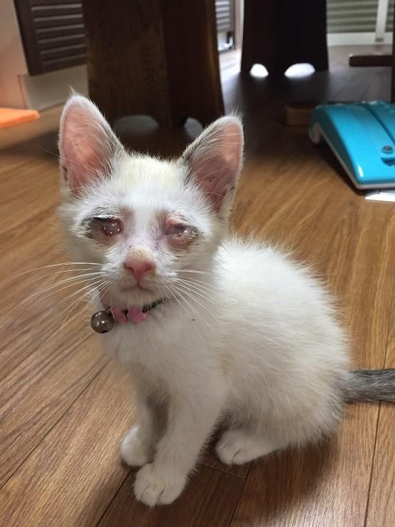 酷い風邪ひきさんで、特に目の症状が酷い子です
